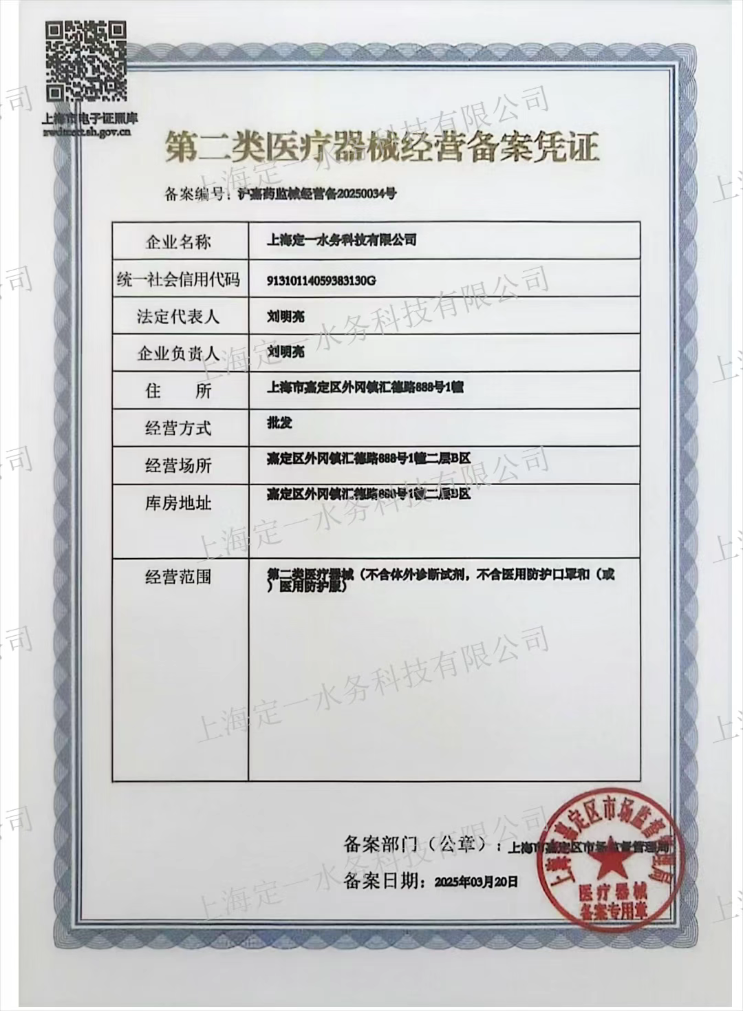 為更好的推進定一產(chǎn)品在制藥、醫(yī)療領(lǐng)域的應用和服務,上海定一申報的“第二類醫(yī)療器械經(jīng)營許可證”于近日下發(fā)。