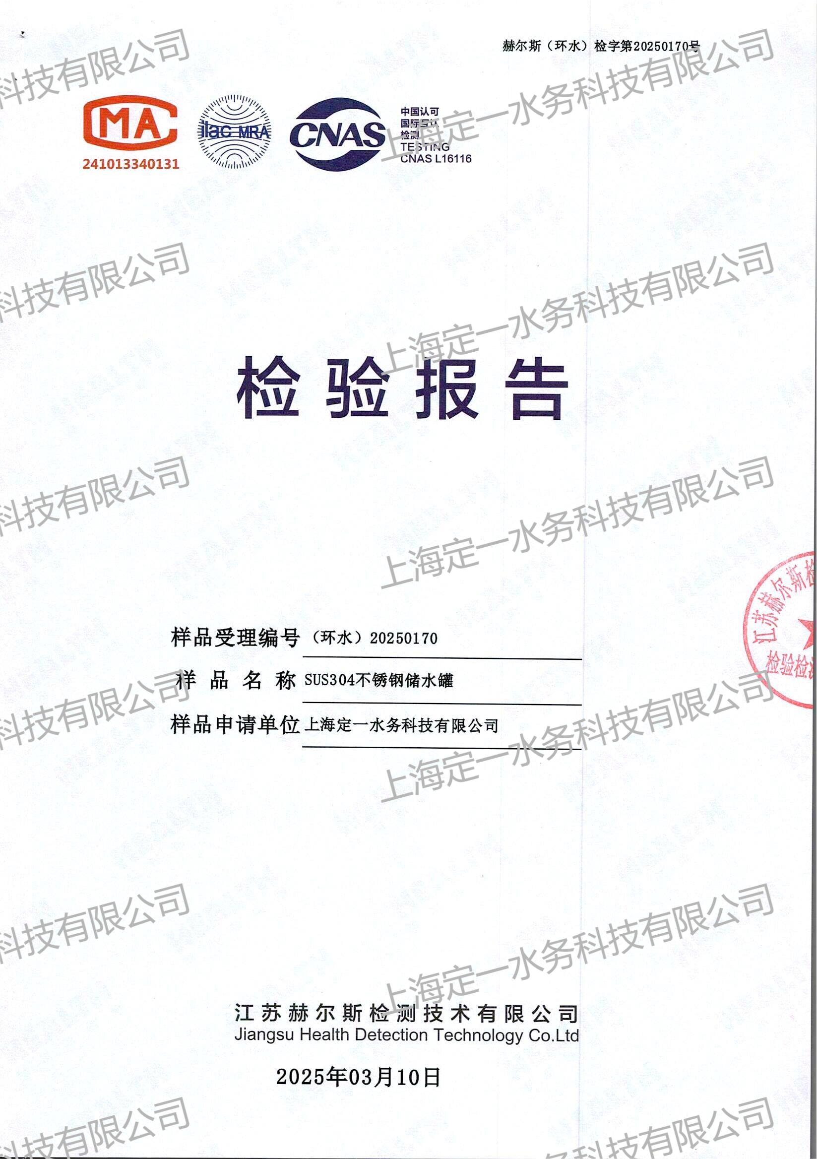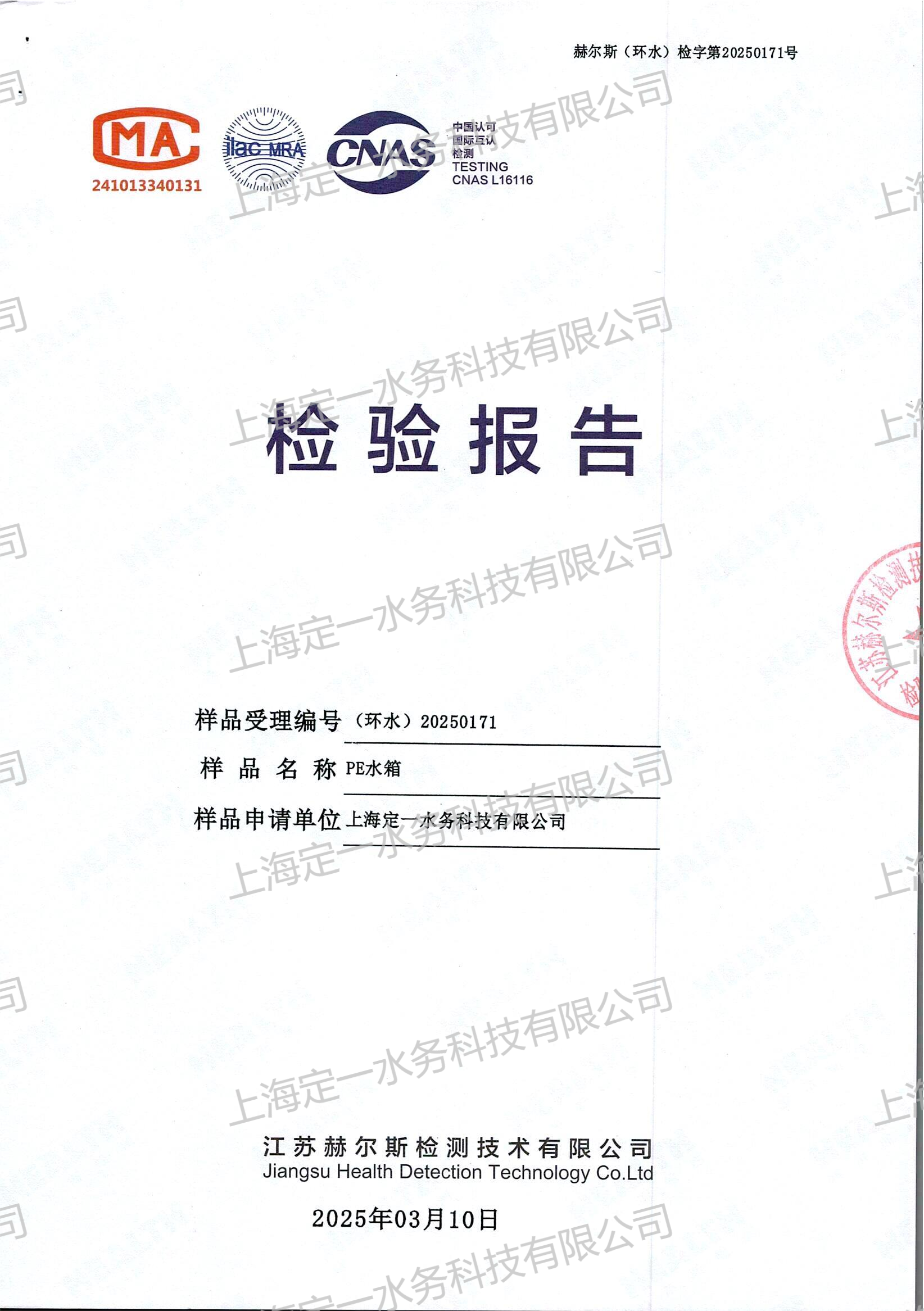 上海定一PE水箱-檢驗(yàn)報(bào)告